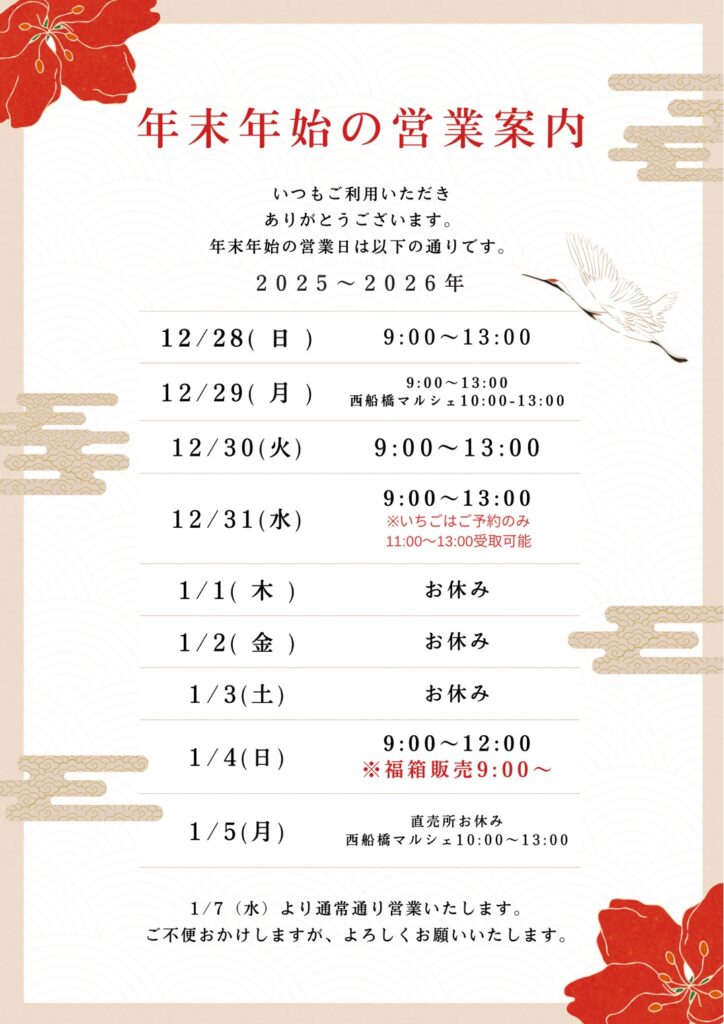 3月14日より西船橋マルシェの営業時間を変更いたします。 -